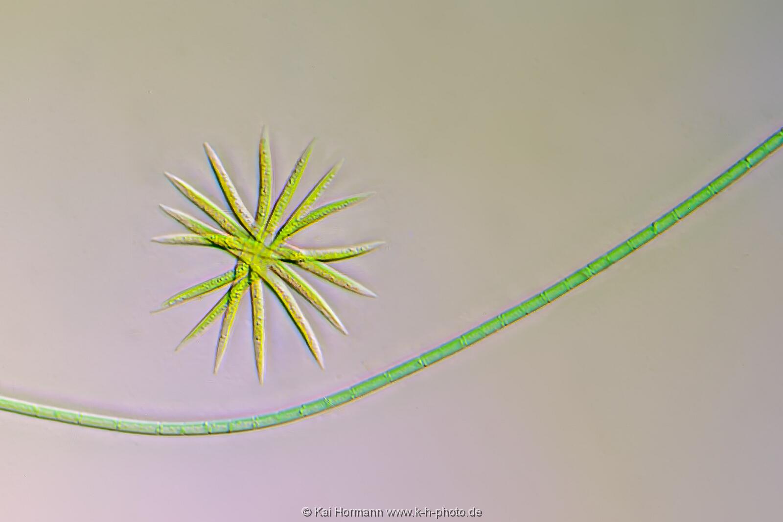 Alge Ankistrodesmus falcatus mit Fadenalge.